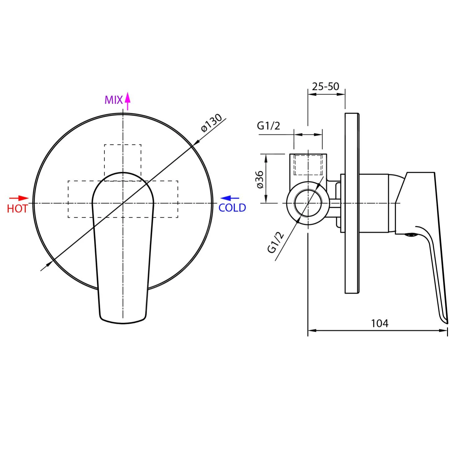 Eengreeps inbouw douchekraan
