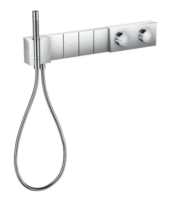 - de verpakking bevat een thermostaat, douchehouder, staafhanddouche en een doucheslang in metal look 1,25 m
