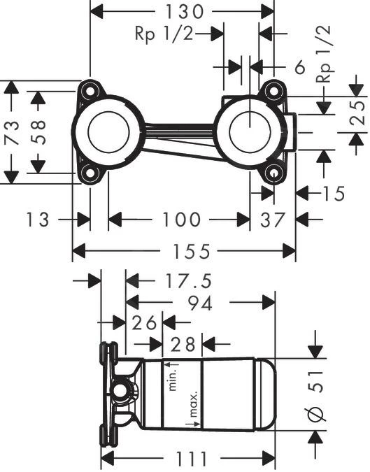 Basisgarnituur voor eengreeps inbouw wastafelkraan