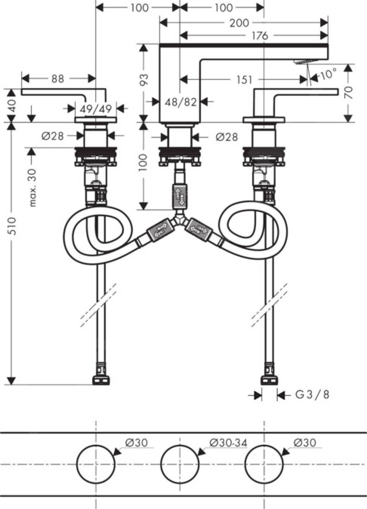 Driegats wastafelkraan