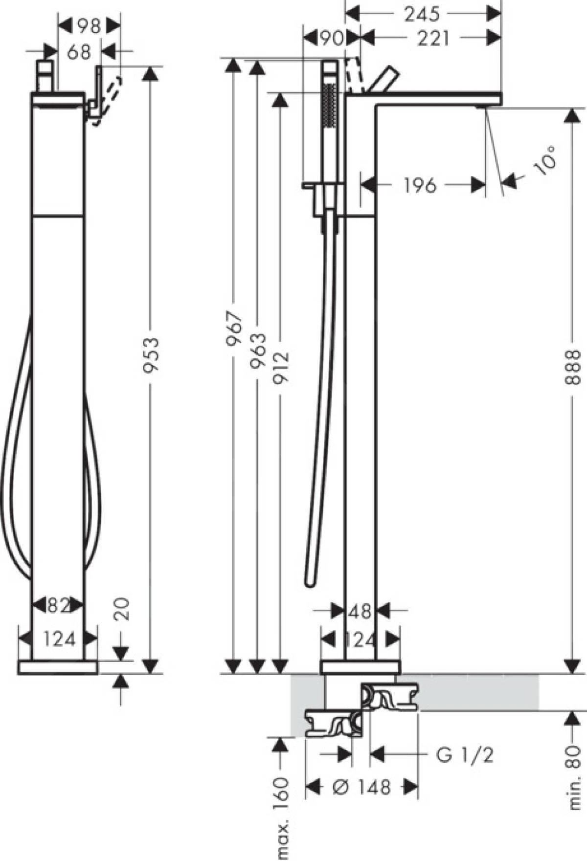 - doorstroming van de handdouche bij 0,3 MPa: 20 l/min