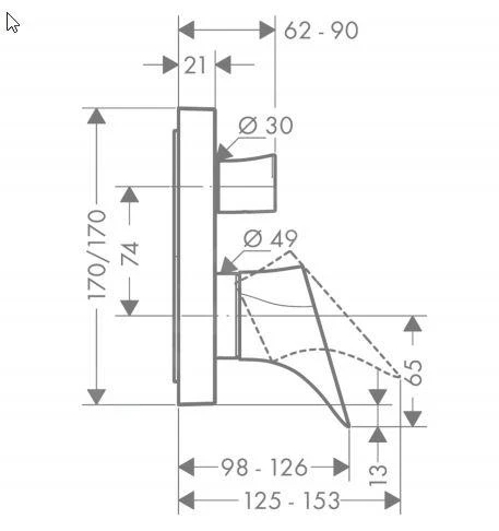 - bevat handgreep, flens, mengeenheid, metalen rozet, omstelling