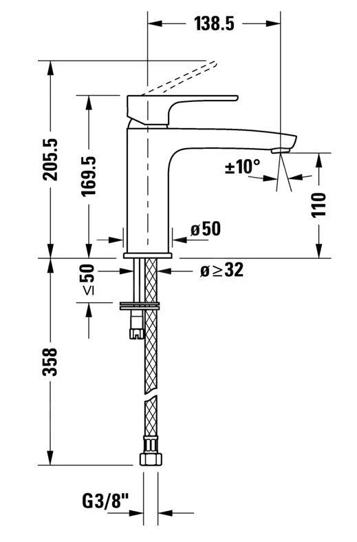 - kraanhoogte 169,5 mm