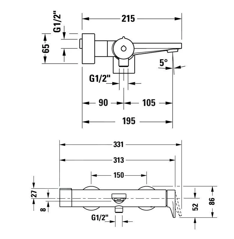 - lengte uitloop 195 mm