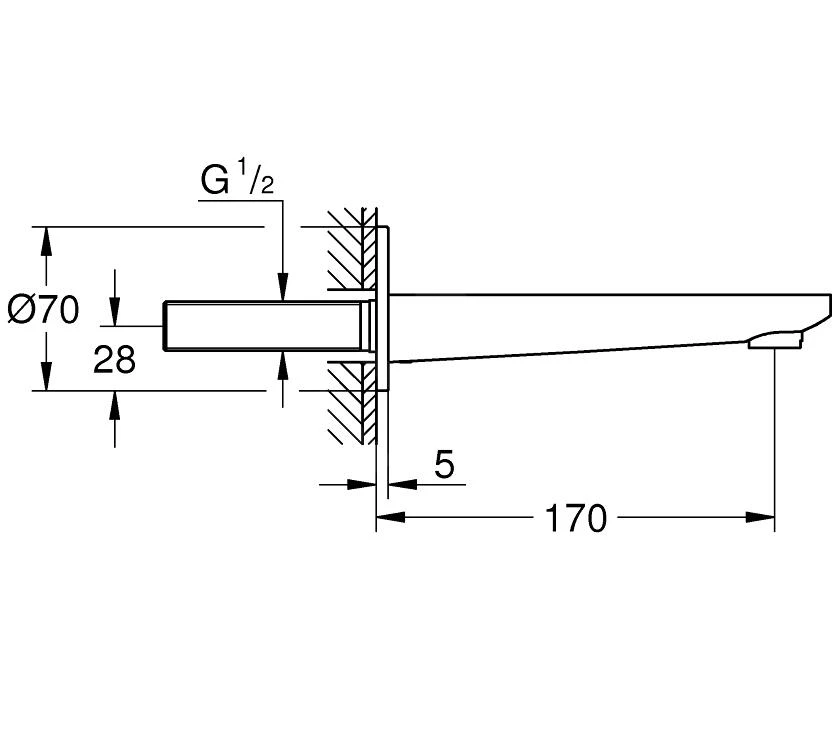 - lengte uitloop 170 mm