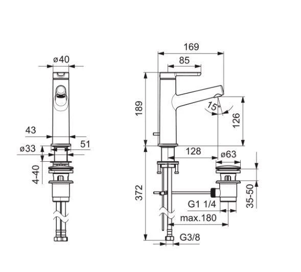 - lengte uitloop:Â 128 mm