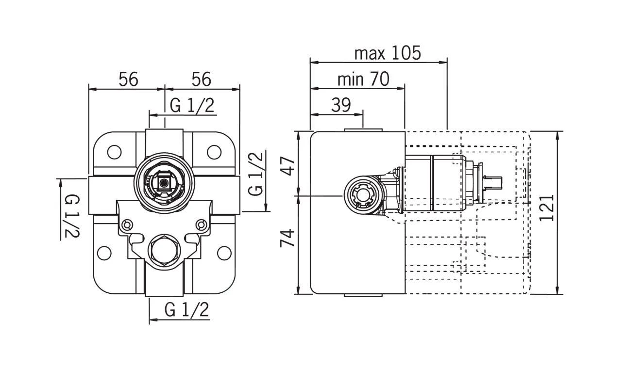 - mogelijkheden van aansluiting:Â Â 1 of 2 uitgangen voor mengwater (afvoerploeg bijgeleverd)