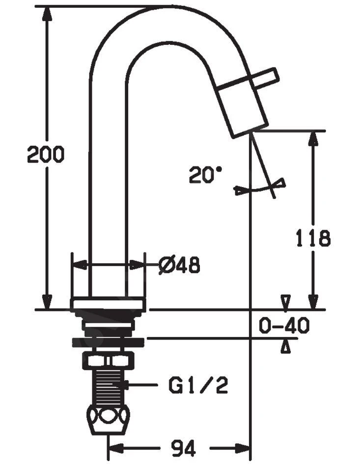 - lengte uitloop: 94 mm