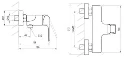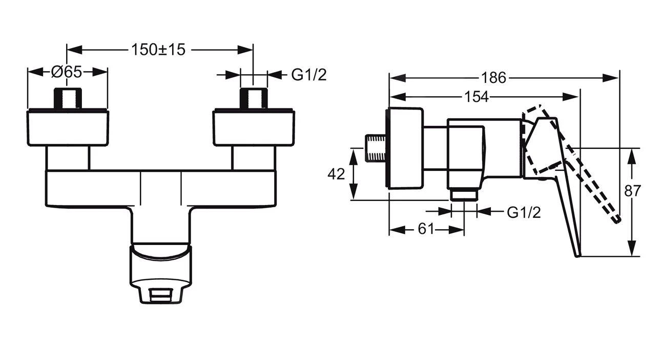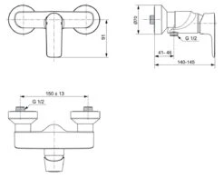 - uitgang van de douche in neerwaartse richting G 1/2