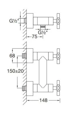 - hartafstand 150 mm