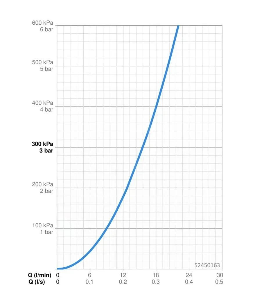 - straal bij 0,3 MPa: 15,6 l/min