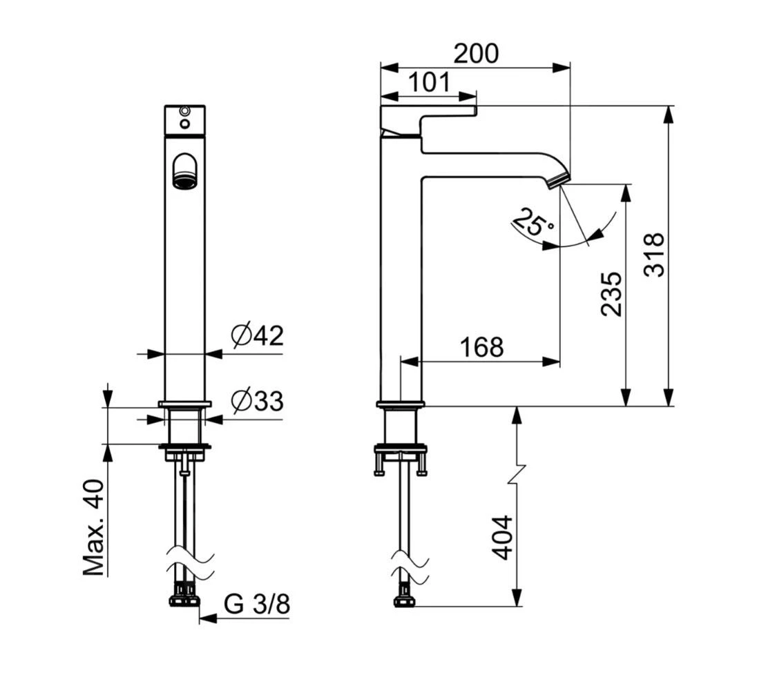 Eengreeps wastafelkraan geschikt voor wastafelkom