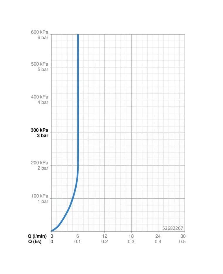 - straal bij 0,3 MPa: 6 l/min