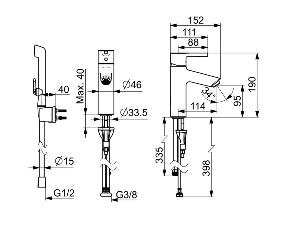 - Aansluitmaat leidingen G 3/8