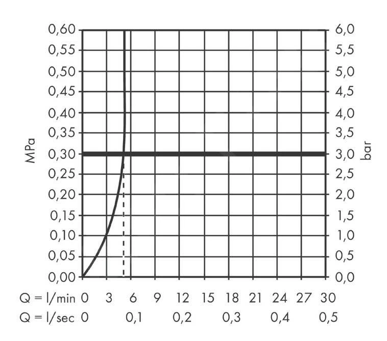 - max. doorstroming: 5 l/min (druk 3 bar)
