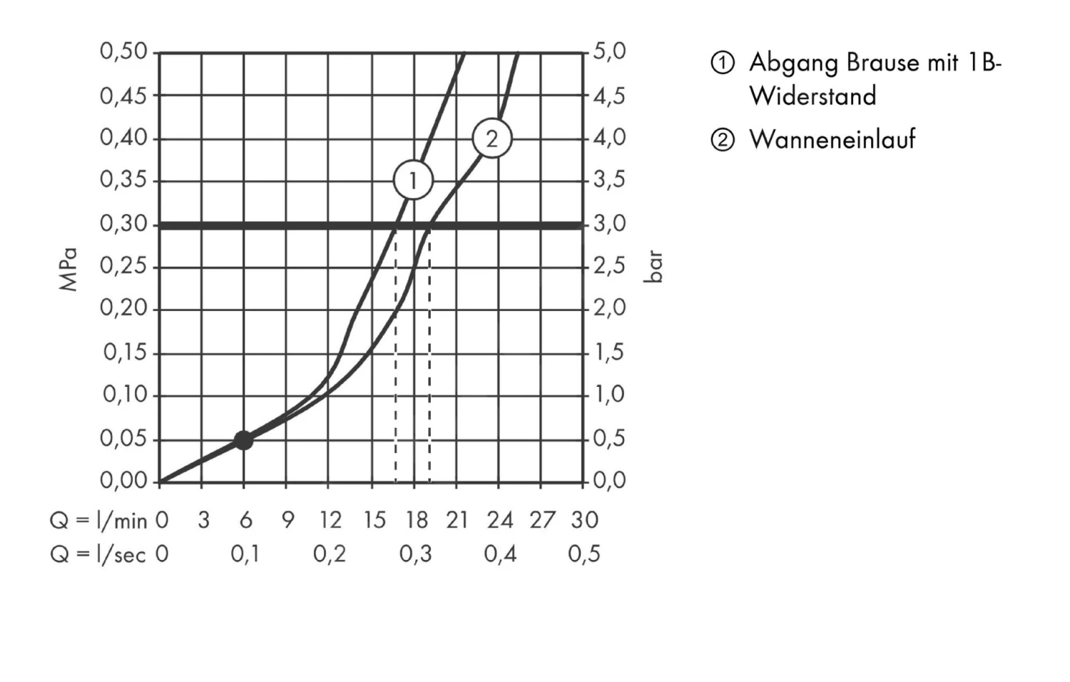 - doorstroming via handdouche (bij 0,3 MPa): 17 l/min