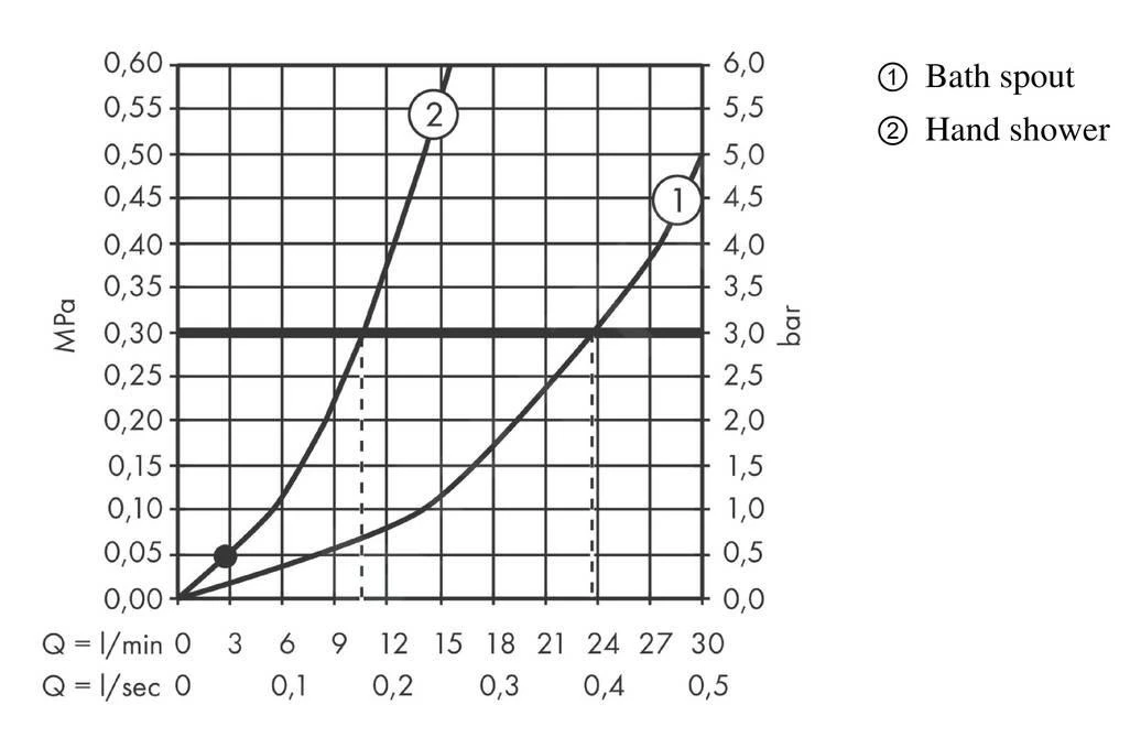 - maximale doorstroming: 9,5 l/min (bij een druk van 3 bar)