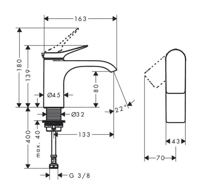 - lengte uitloop: 133 mm