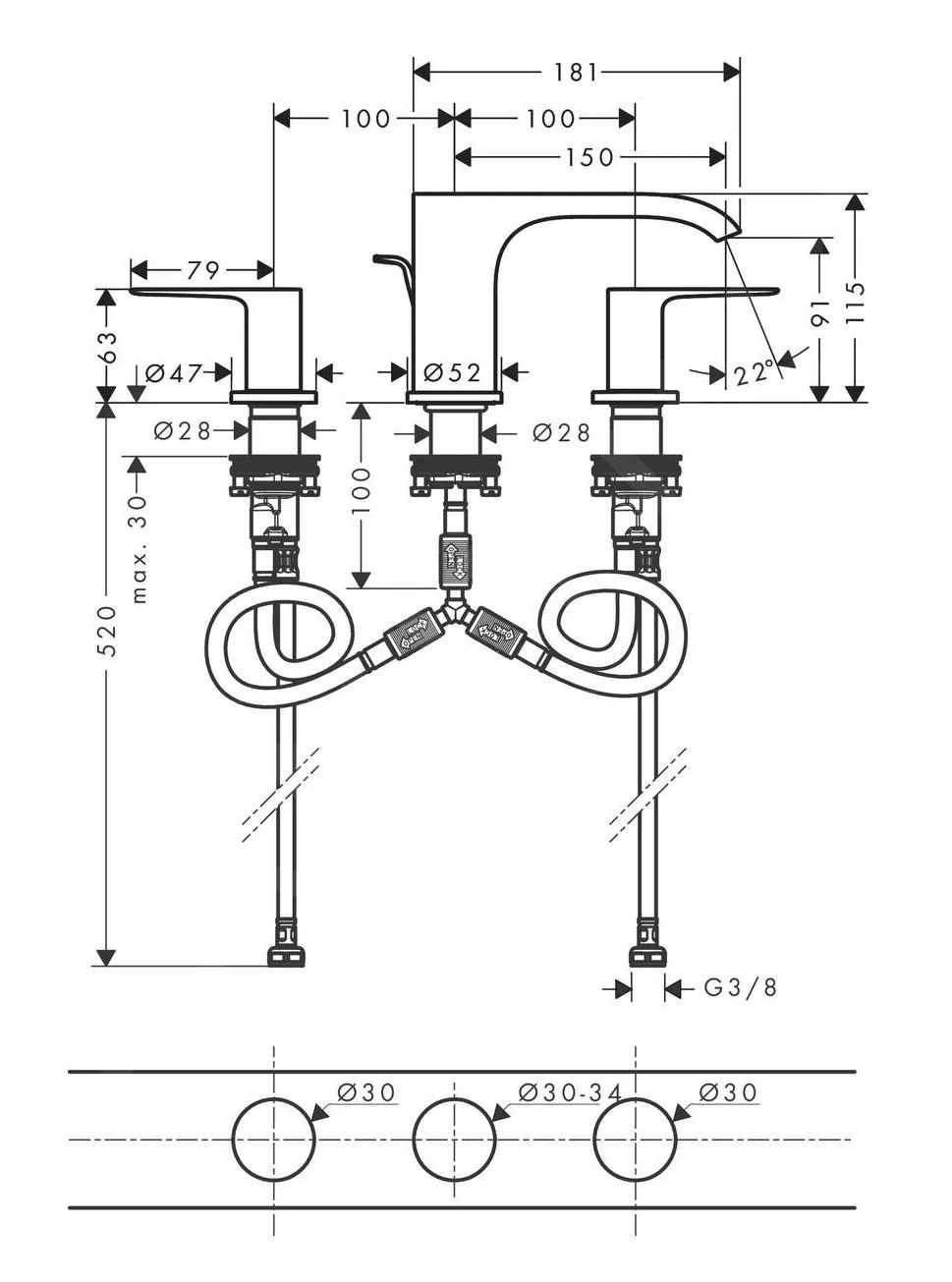 Vivenis 90 3-gats wastafelkraan