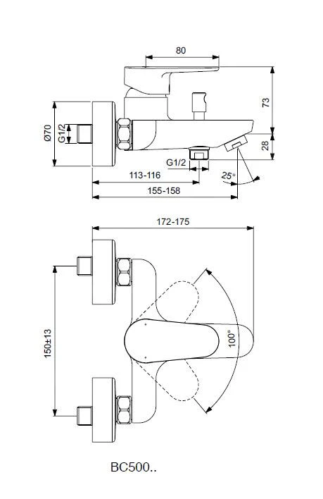 - metalen bedieningshendel met warm-/koudwateraanduiding