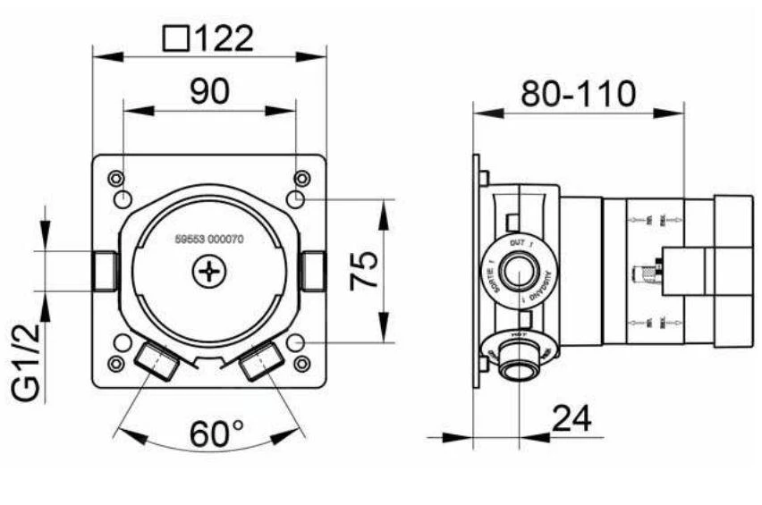 - inbouwset met thermostaat zonder bovendeel in elastomeer behuizing