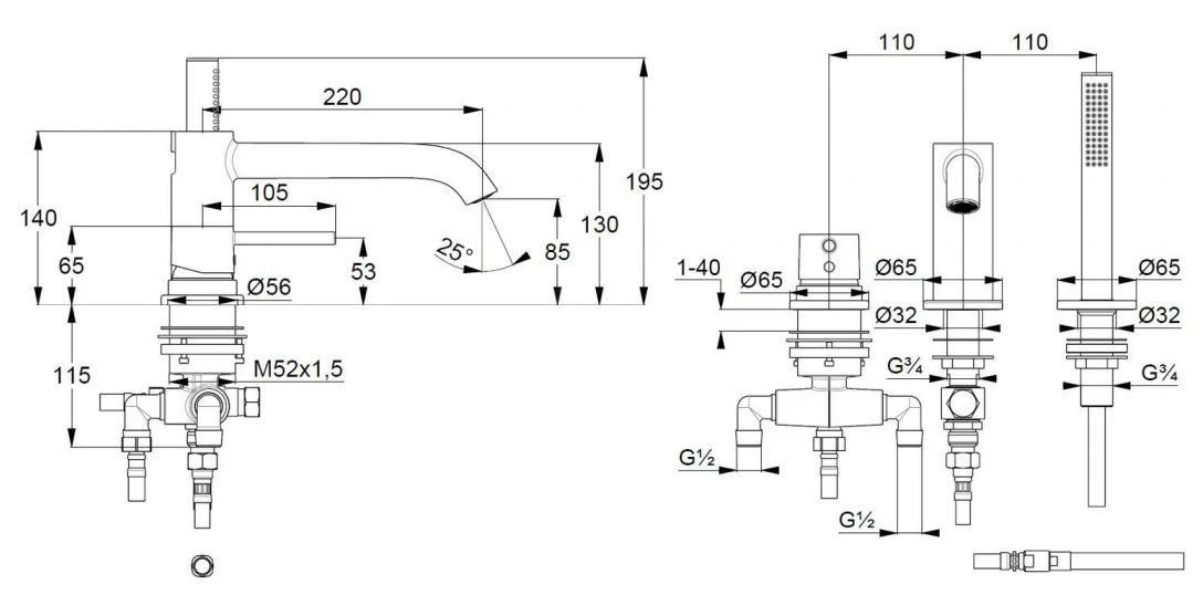 - staafhanddouche, 1 straal Volume (zachte douchestraal)