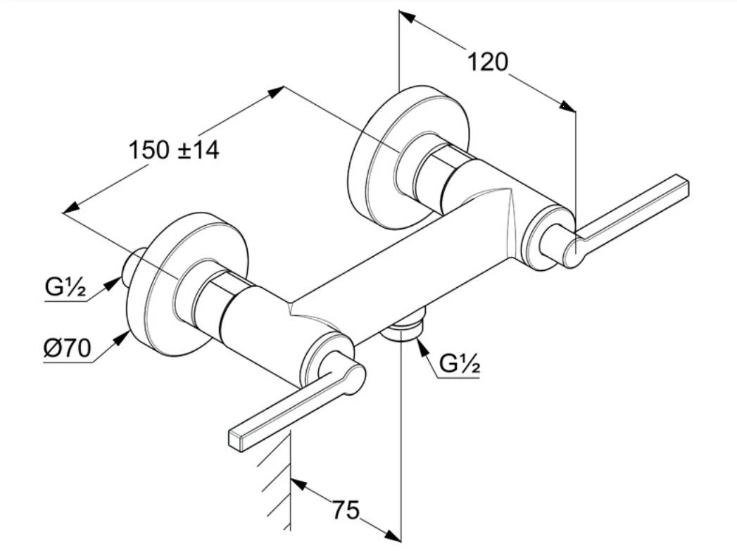 - hartafstand aansluitingen: 150 mm