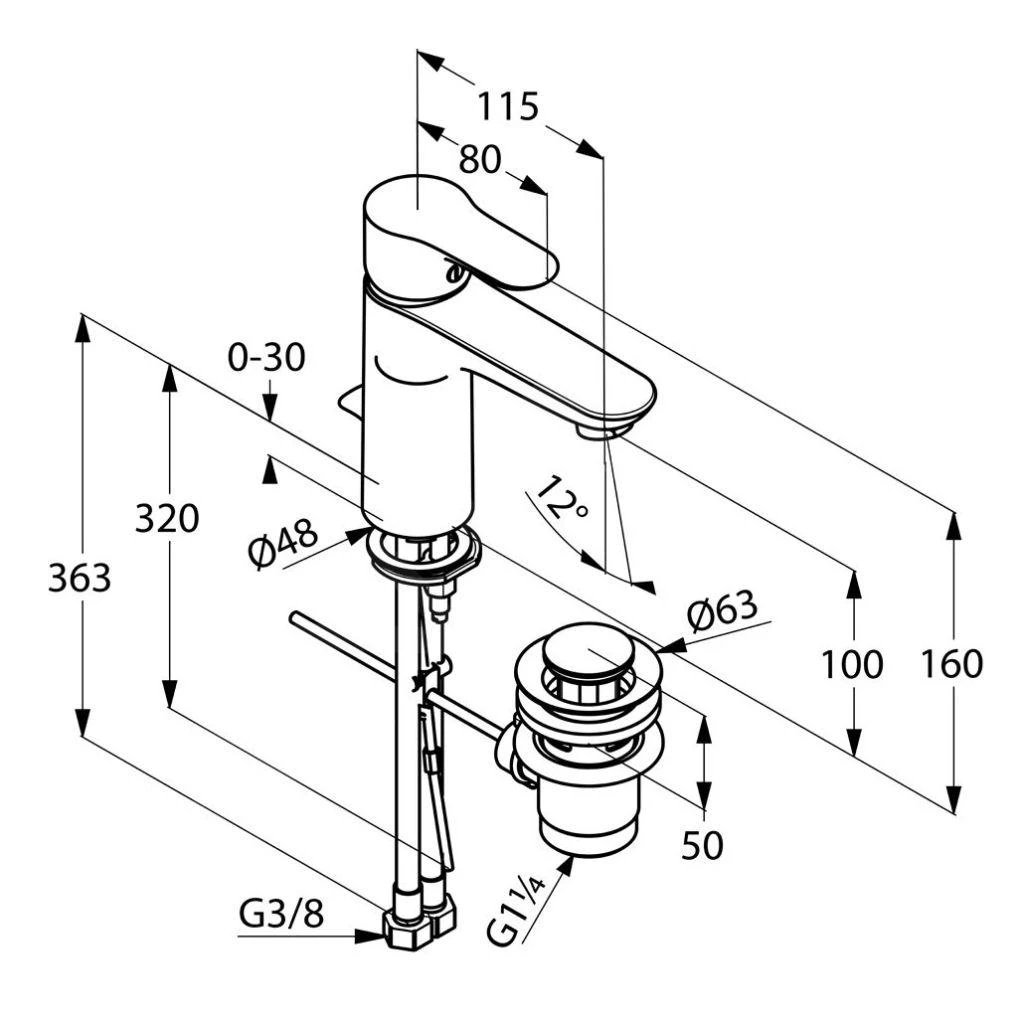 Ideal Standard Joy – Inbouw Wastafelkraan, Uitloop 225 Mm, 2-gats, Silver Storm A7379GN