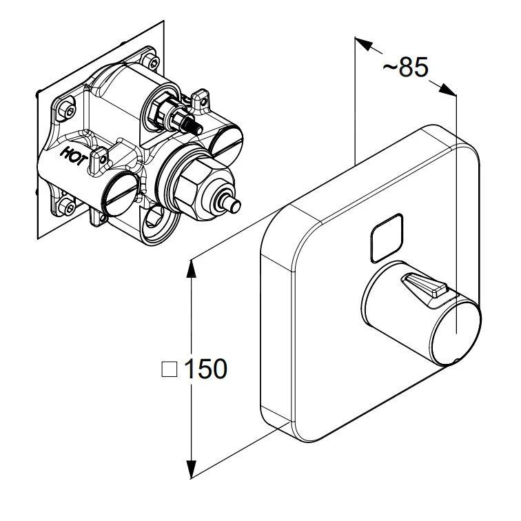 - thermostatische keramische cartouche met regulering van de waterdoorstroming