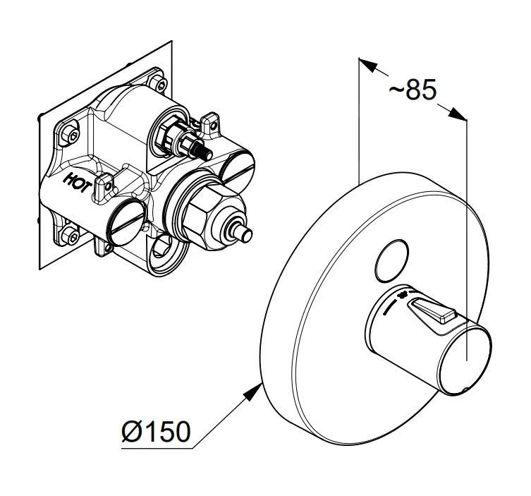 - thermostatische keramische cartouche met regulering van de waterdoorstroming