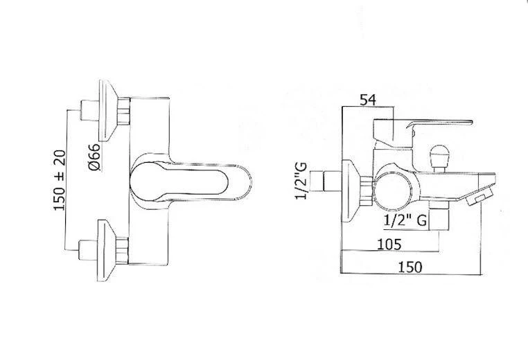 Eengreeps opbouw badkraan, incl. handdouche, douchehouder en flexibele slang