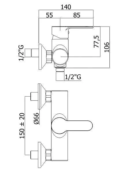 Eengreeps opbouw douchekraan zonder douchetoebehoren