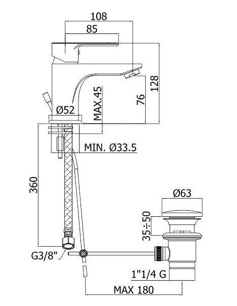 - lengte uitloop 108 mm, comfortzone 76 mm