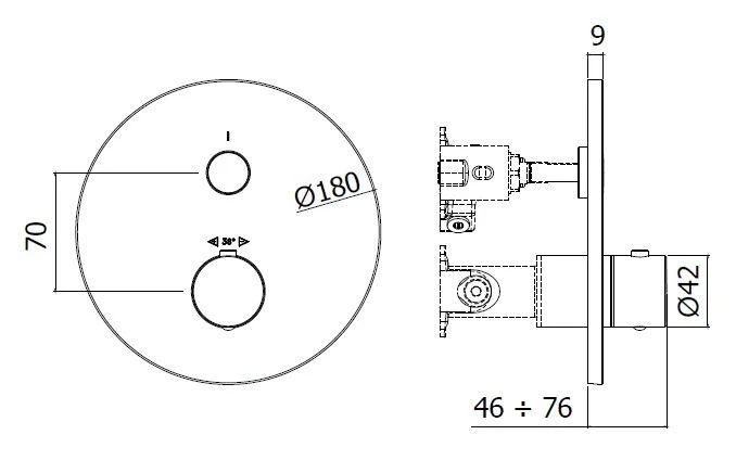 Thermostatische inbouw douchekraan, zonder inbouwdeel