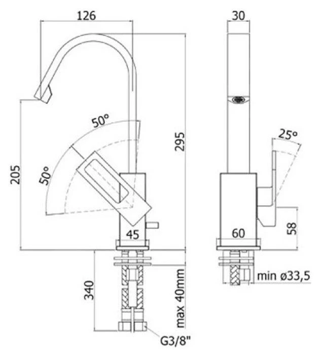 - set van 2 roestvrijstalen slangen G 3/8″ voor aansluiting met een lengte van 45 cm