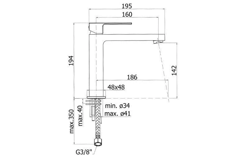 - set van 2 roestvrijstalen slangen G 3/8″ voor aansluiting op hoekstopkranen met een lengte van 35 cm