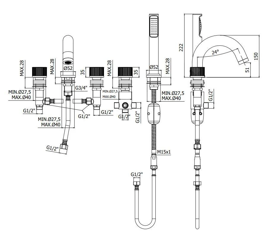 Badkraan met 5-gats installatie