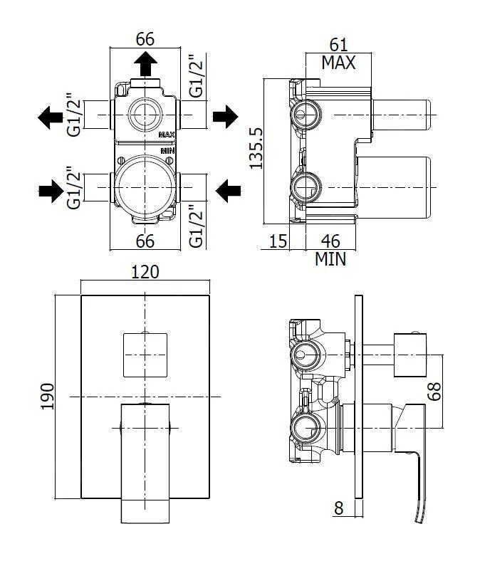 - voor 3 functies (plus 3 standen voor gecombineerd gebruik)