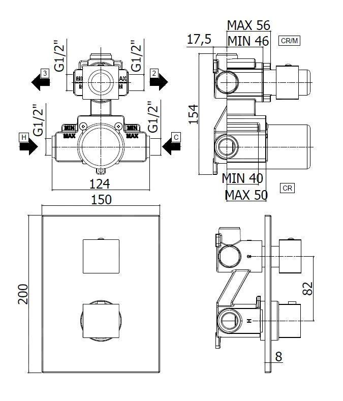 Inbouw thermostatische douchekraan, voor 2 uitgangen