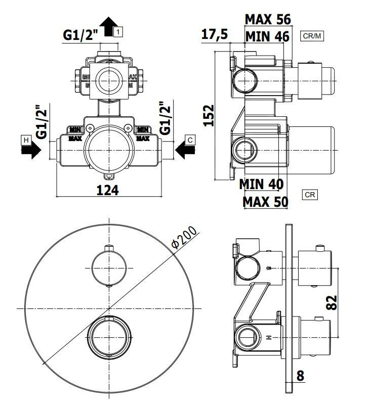 Paffoni Light – Inbouw Thermostaat Douchekraan Met Inbouwdeel, 2 Functies, Mat Zwart LIQ018NO
