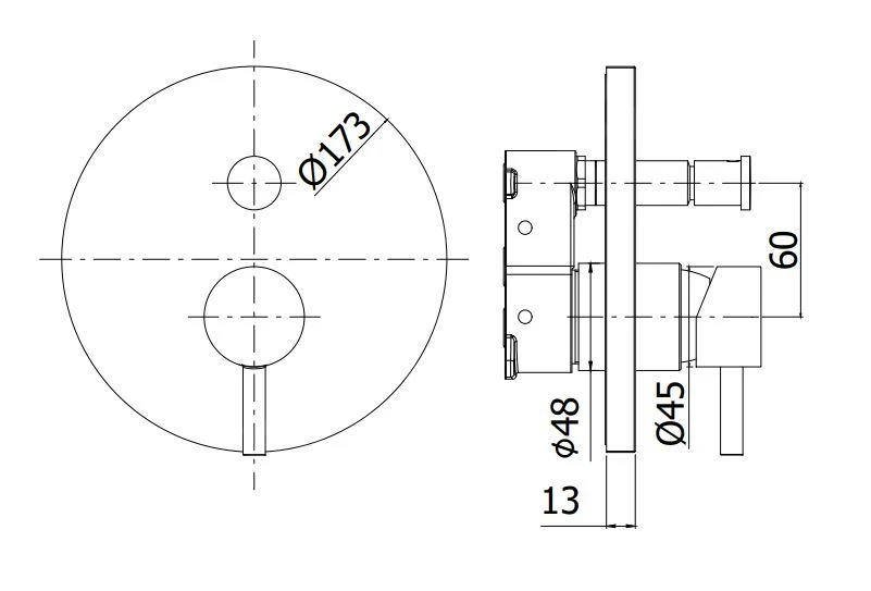 Afbouwset voor inbouw douchekraan, kraanlichaam en afdekplaat