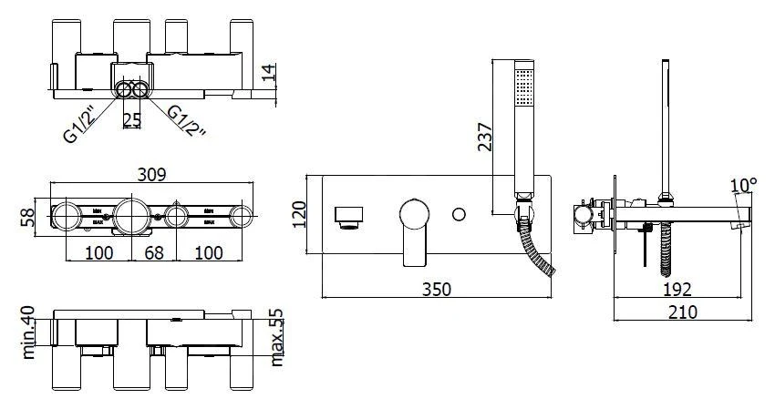 Inbouw badkraan met inbouwdeel, incl. doucheset