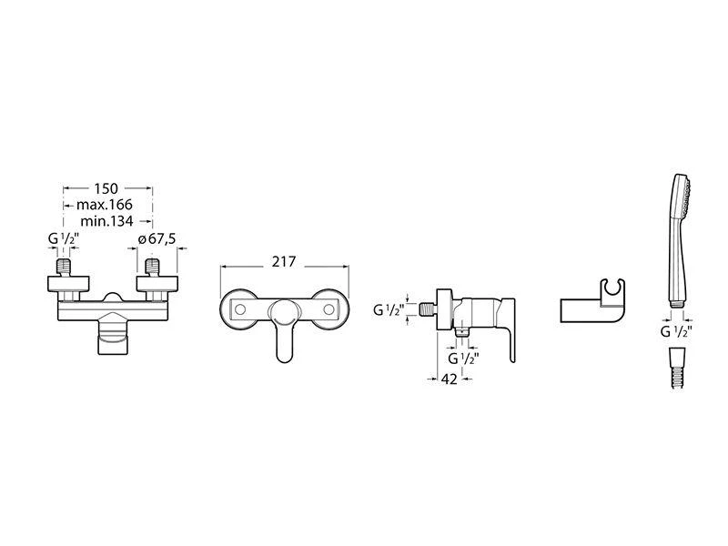 - Inclusief doucheset met handdouche ⌀ 80 mm, doucheslang en douchehouder