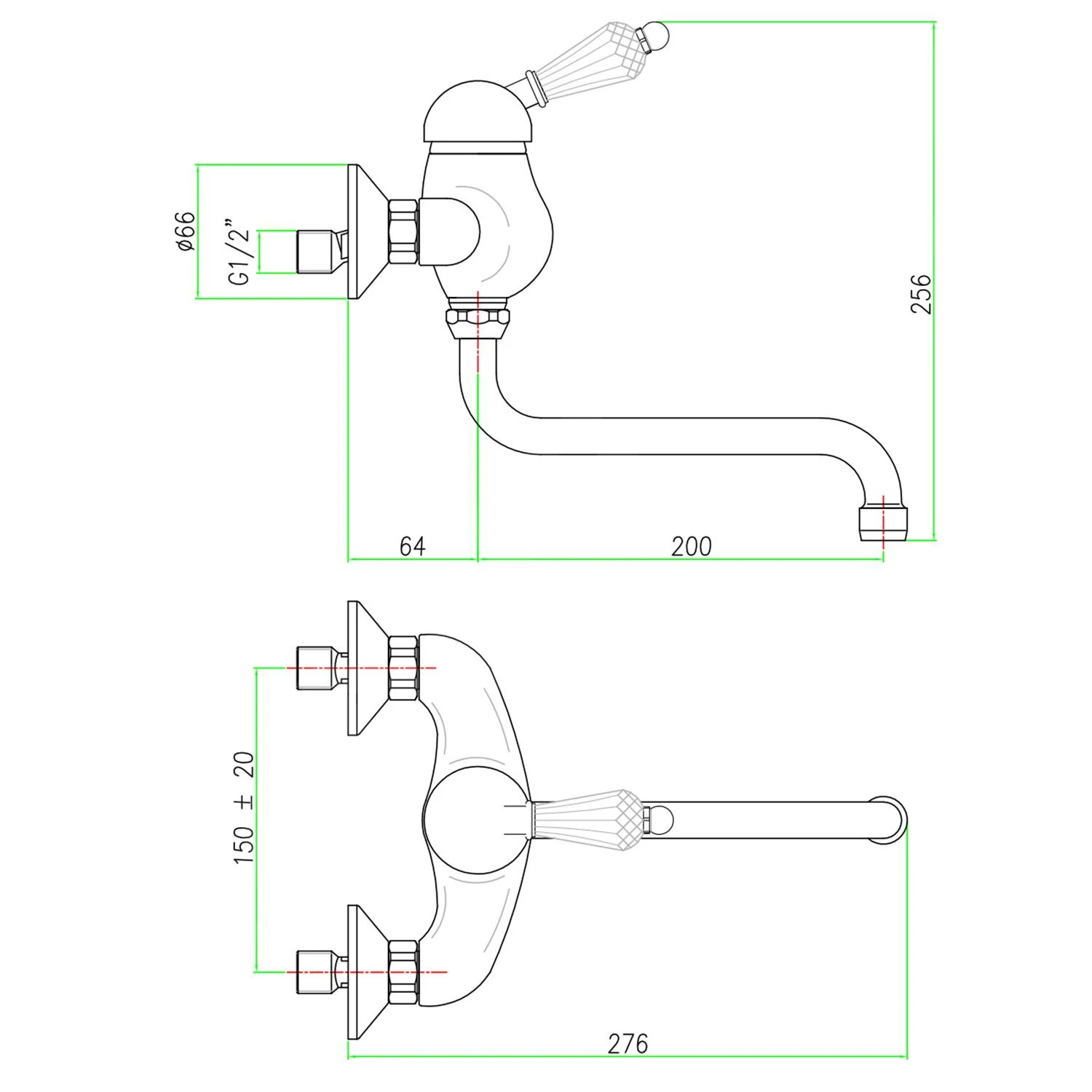 Kirké Crystal eengreeps douchekraan, wandmontage