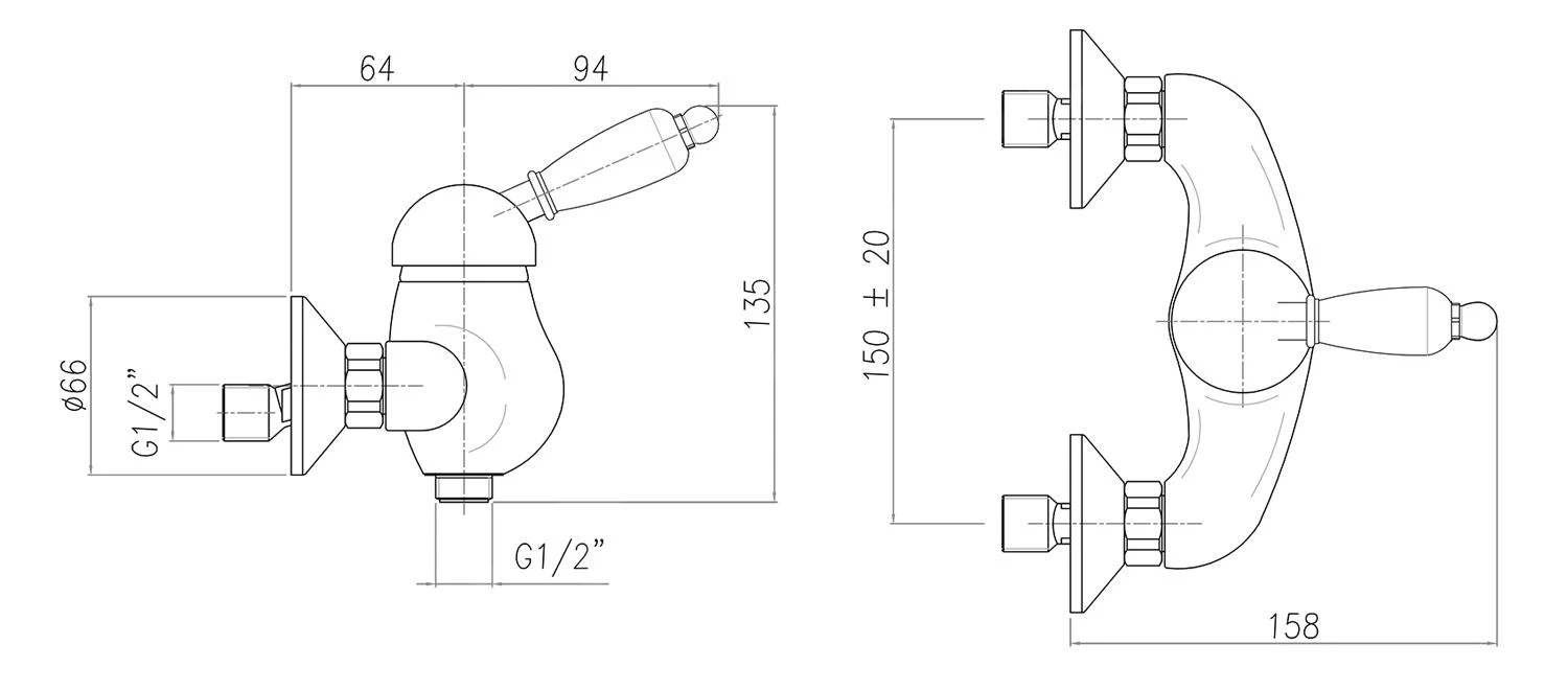 - hartafstand wateraansluiting 150 mm