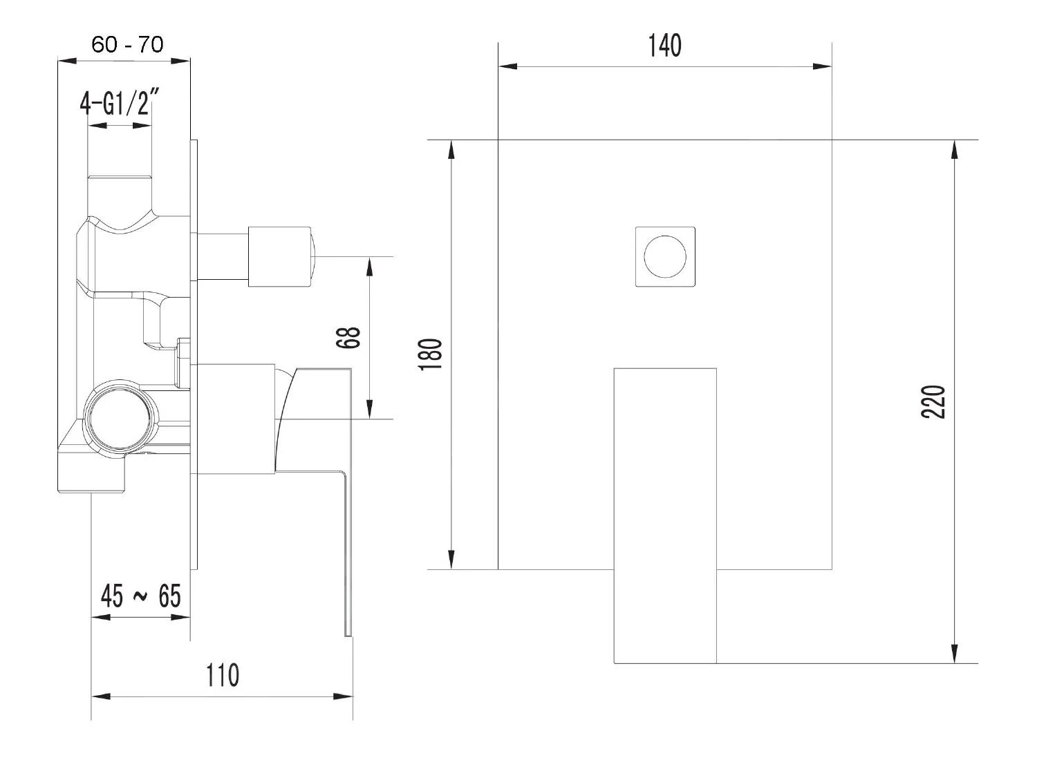 Inbouw douchekraan met omstelling voor 2 uitgangen