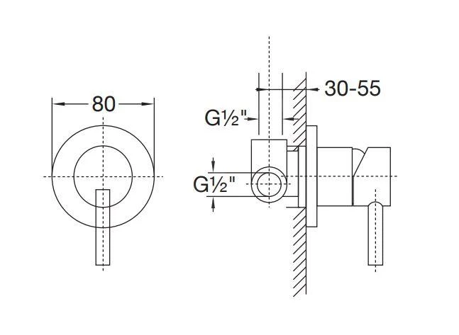 - met klassieke 1/2″ inbouwdeel klaar voor installatie