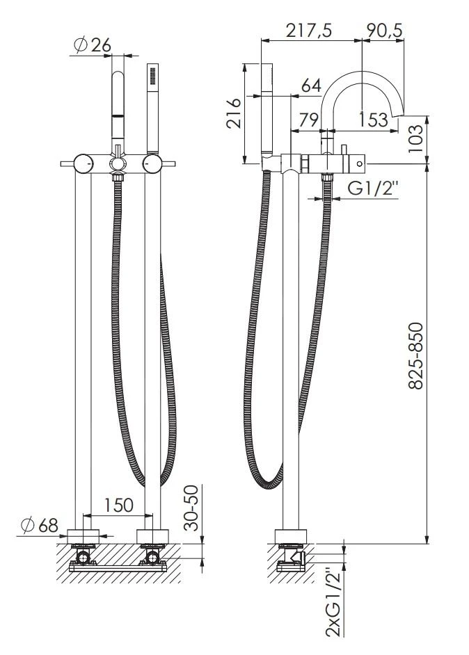 - met douchehouder, doucheslang 1500 mm en staafhanddouche